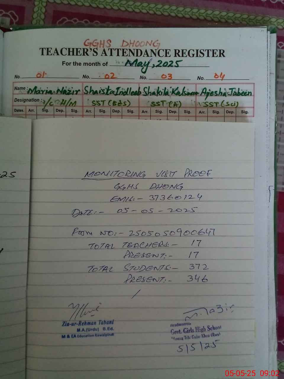 | EMIS Code: 37360124 | Name of School: GGHS DHONG | |||