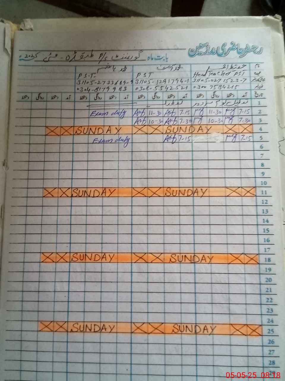 | 31**** | Mu**** Ha**** | ESE | Contract | 0 | 0 | 0 | 0 | 0 | 0 | 0 | 0 | 0 | Exam Duty |
