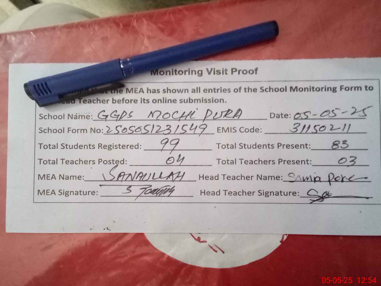 | EMIS Code: 31150211 | Name of School: GGPS MOCHI PURA | |||