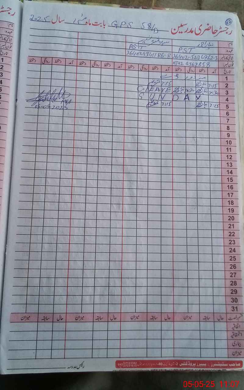 | Name: Sy**** Sa**** Na**** Designation: (School Headmaster's/Headmistress's) PST Phone/Cell Number: 03**** |