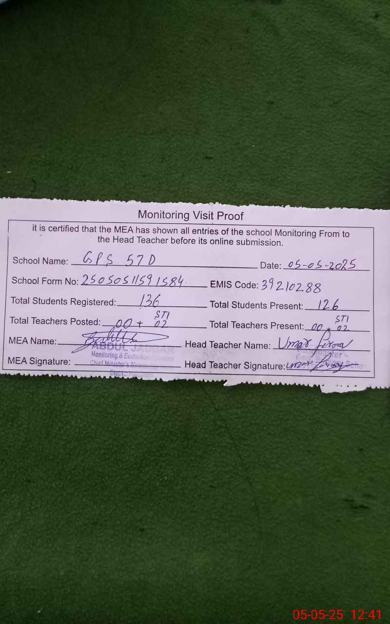 | EMIS Code: 39210288 | Name of School: GPS 57/D | |||