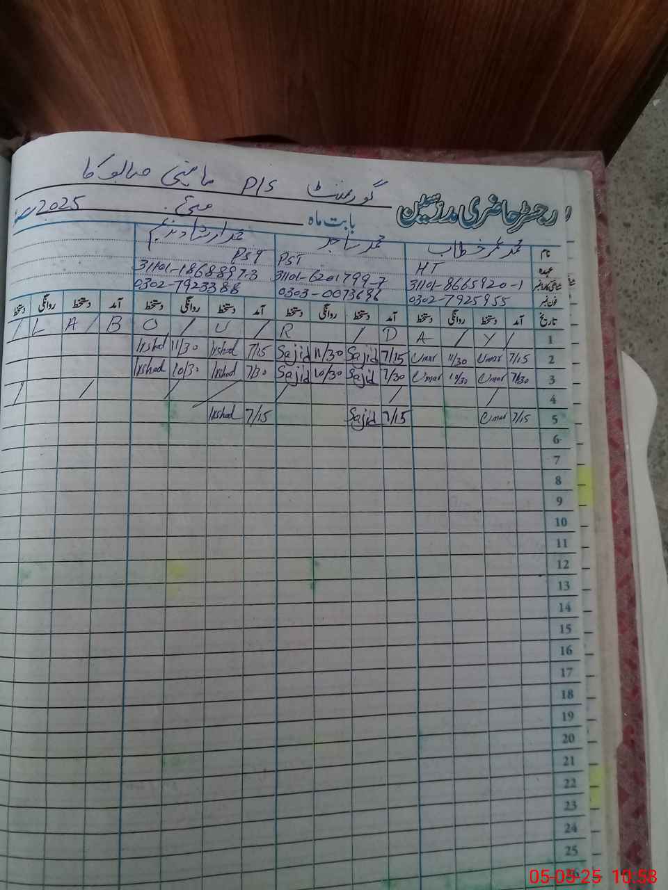 | CNIC | Full Name | Designation | R/C | Absence during last cal. month |