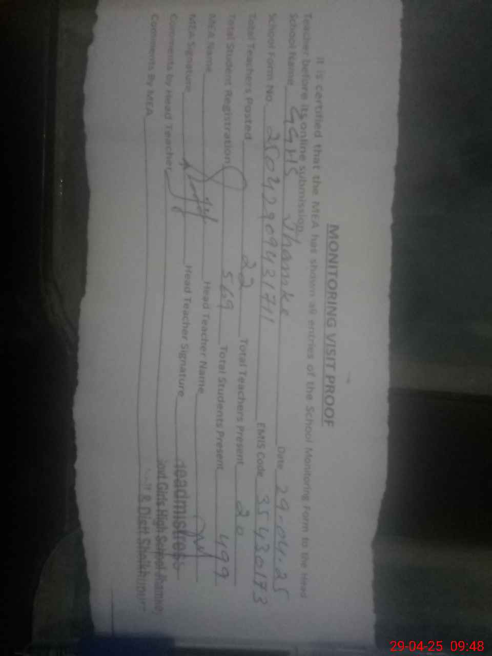 | EMIS Code: 35430178 | Name of School: GGHS JHAMKEY | |||