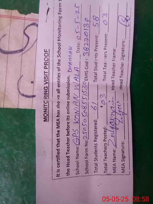 | EMIS Code: 38220130 | Name of School: GPS KONIAN WALA DHAMAK | |||