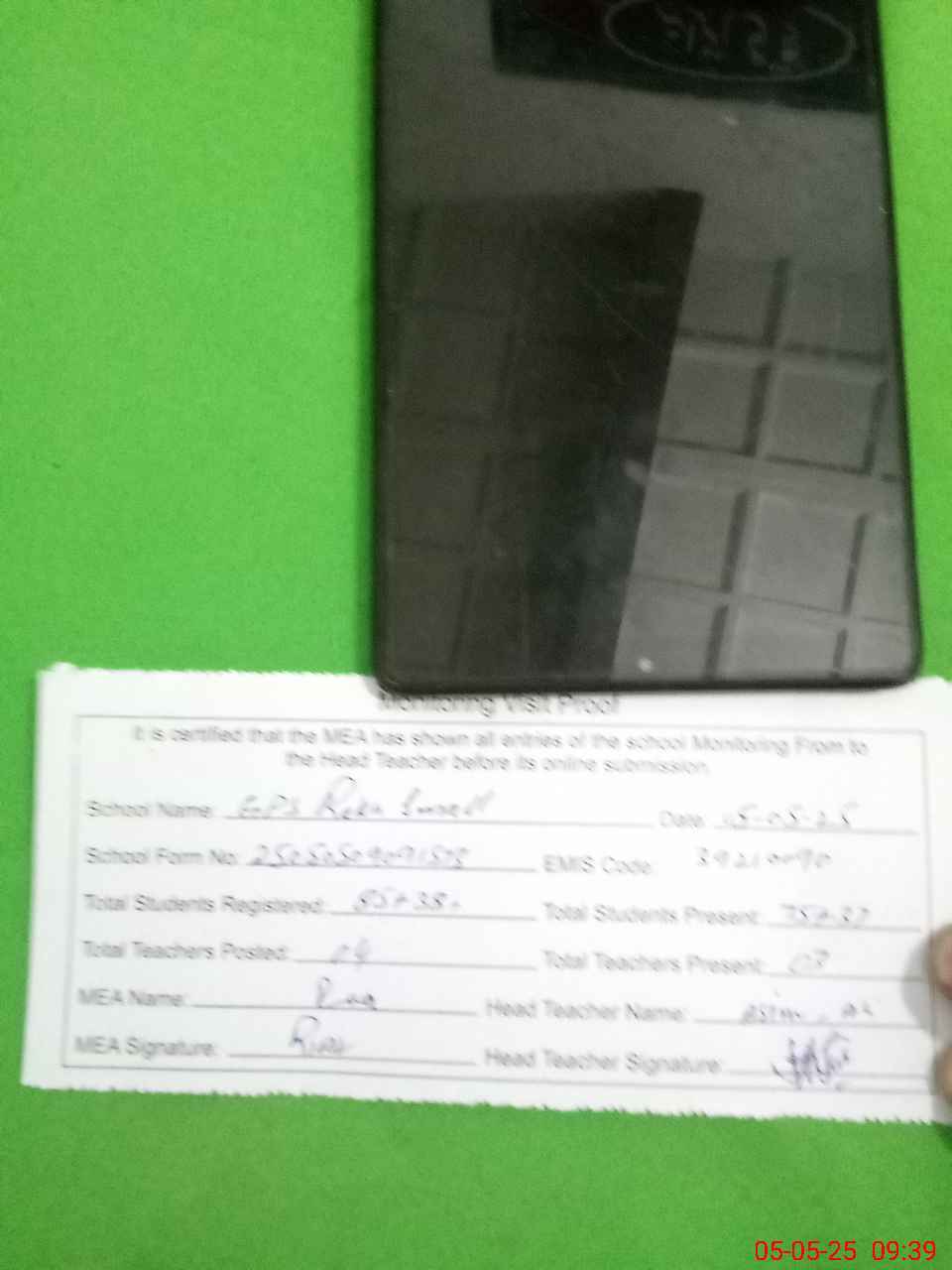 | Attendance Register | Head Teacher | MEA with School | Visit Proof |