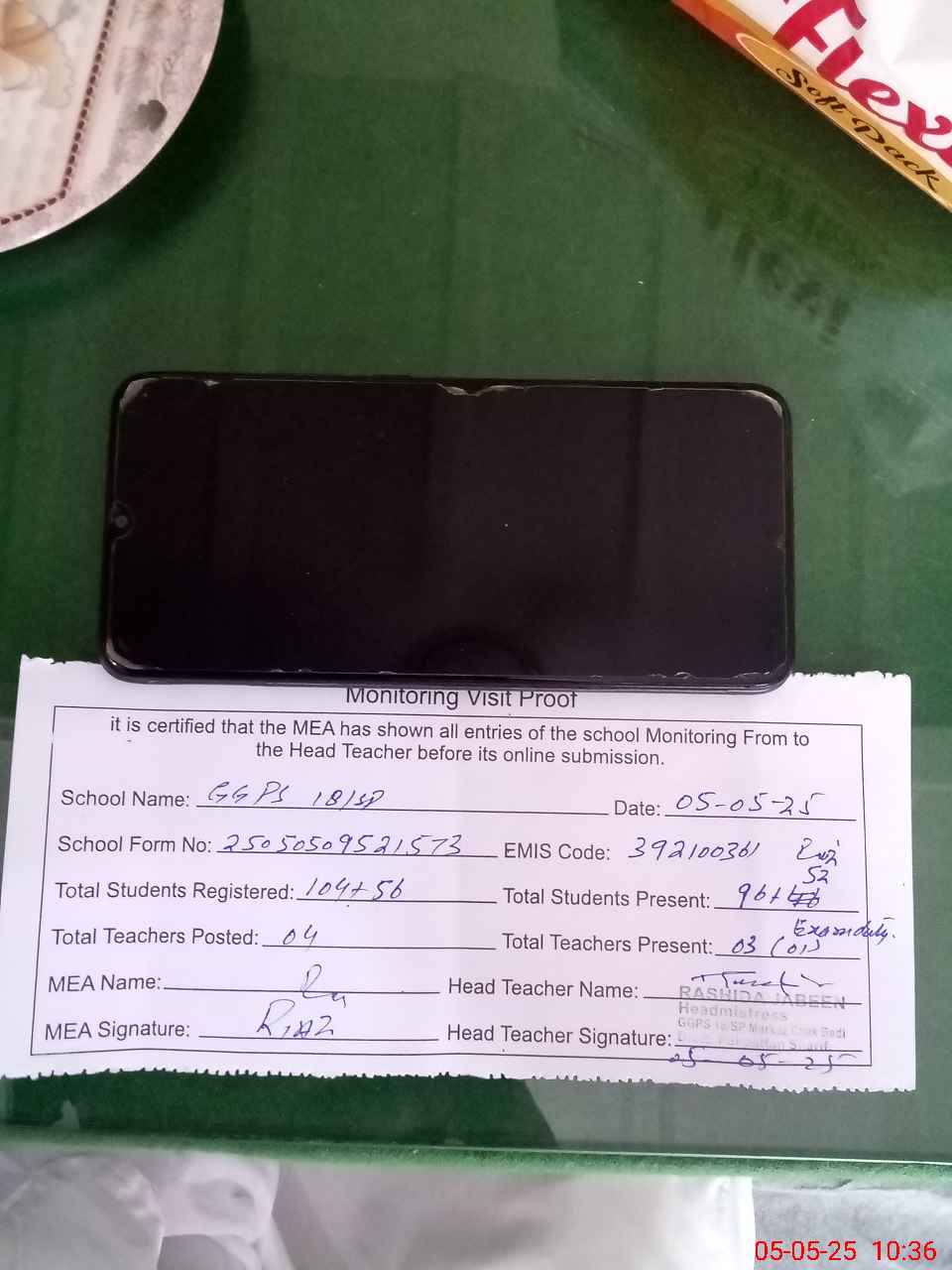 | Attendance Register | Head Teacher | MEA with School | Visit Proof |