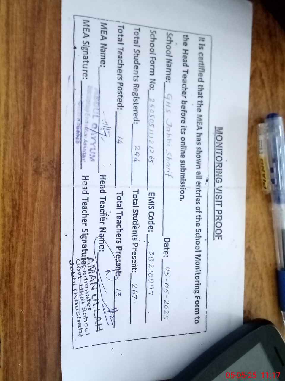 | EMIS Code: 38210897 | Name of School: GHS JABBI | |||