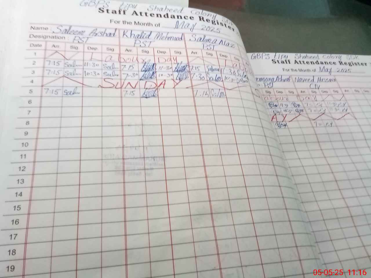 | CNIC | Full Name | Designation | R/C | Absence During Last Calender Month |