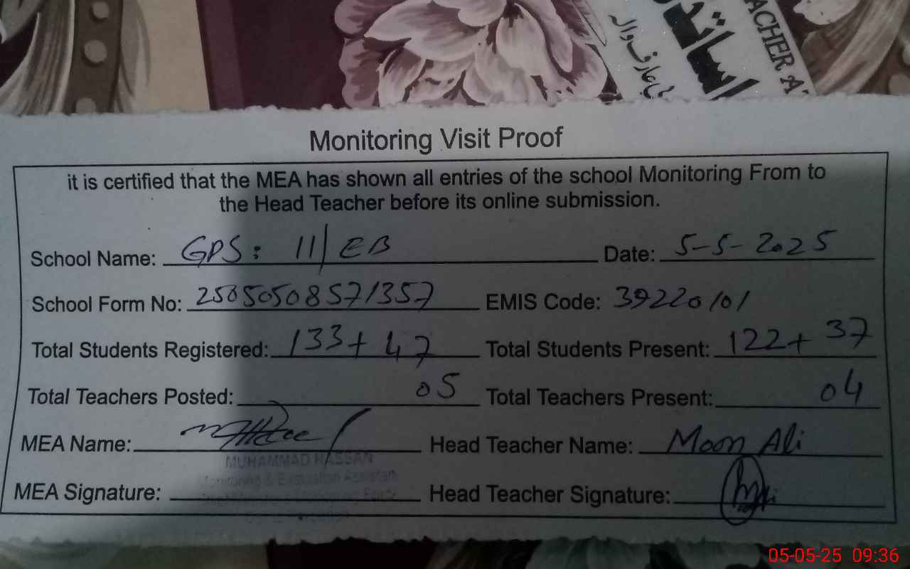 | EMIS Code: 39220101 | Name of School: GPS 11 EB | |||