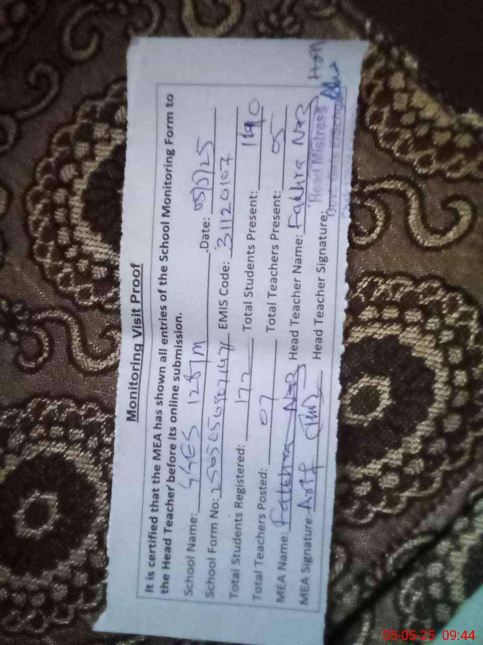 | EMIS Code: 31120107 | Name of School: GGES CHAK NO 128/M | |||