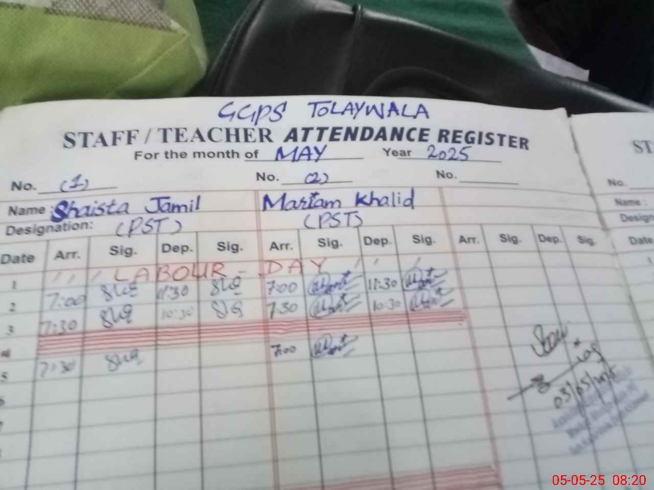 | Name: Sh**** Ja**** Designation: (School Headmaster's/Headmistress's) PST Phone/Cell Number: 03**** |