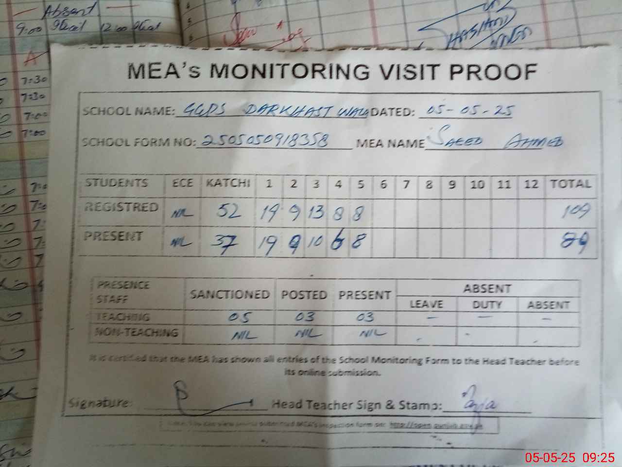 | EMIS Code: 36410367 | Name of School: GGPS DARKHAST WALA, KABIRWALA | |||