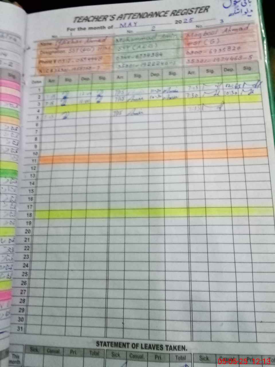 | Name: IF**** AH**** Designation: (School Headmaster's/Headmistress's) SST INCHARGE HM Phone/Cell Number: 03**** |