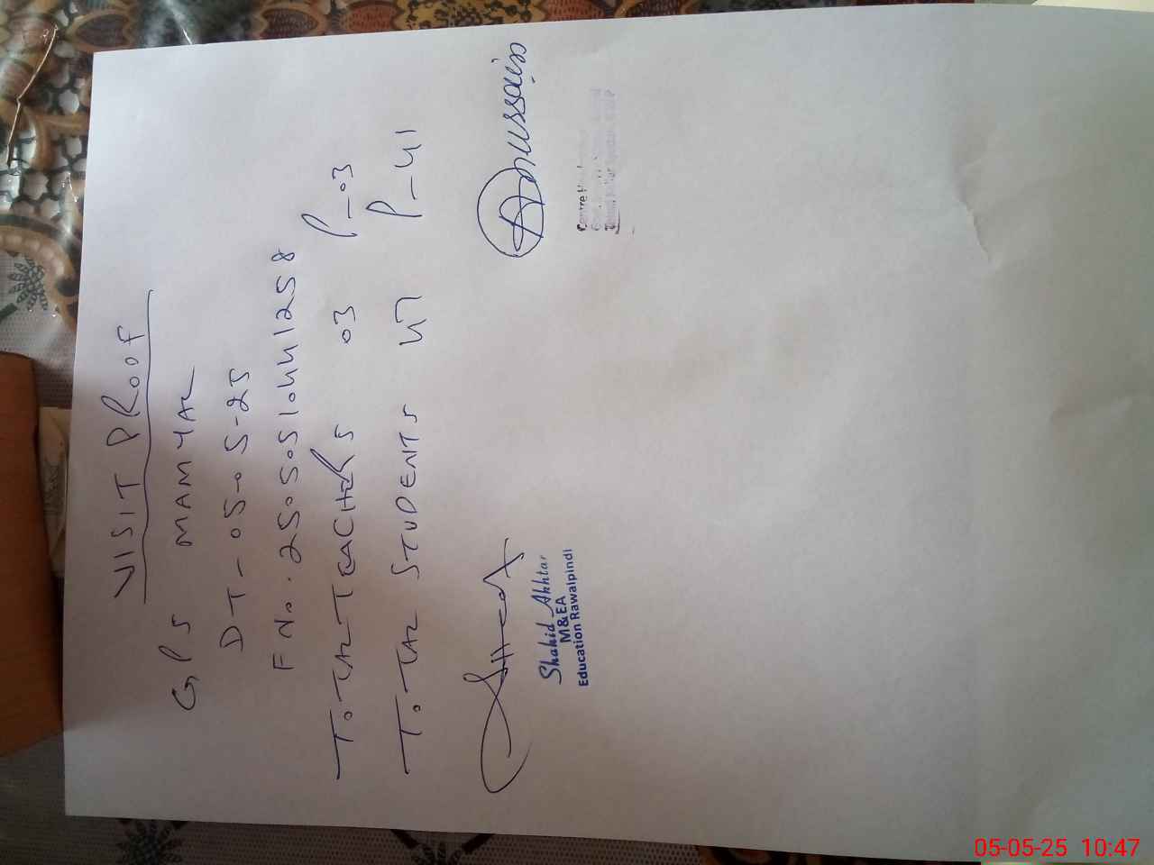 | Name: AB**** HU**** Designation: (School Headmaster's/Headmistress's) PST Phone/Cell Number: 03**** |