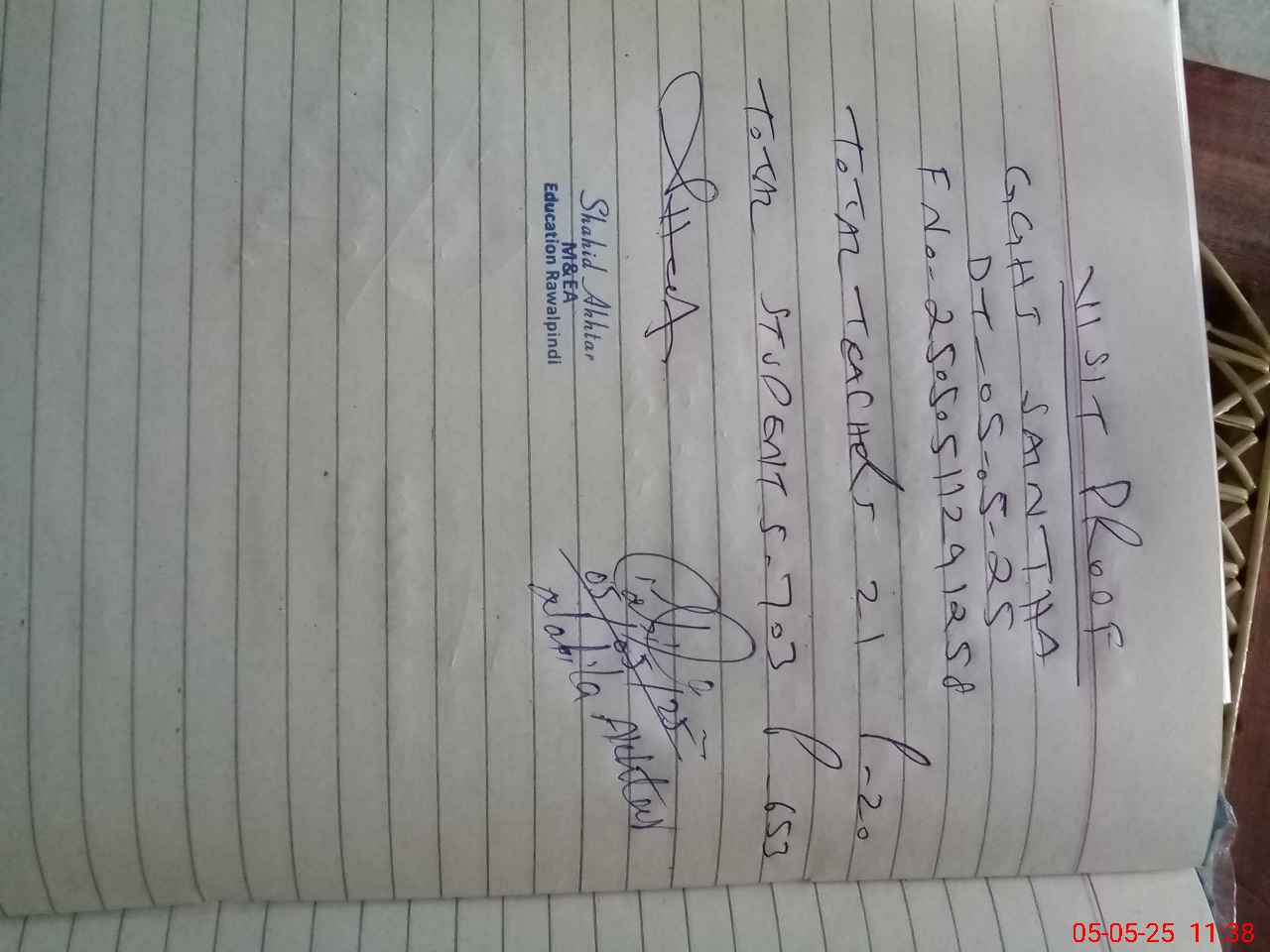 | Name: Na**** Ak**** Designation: (School Headmaster's/Headmistress's) SST Phone/Cell Number: 03**** |