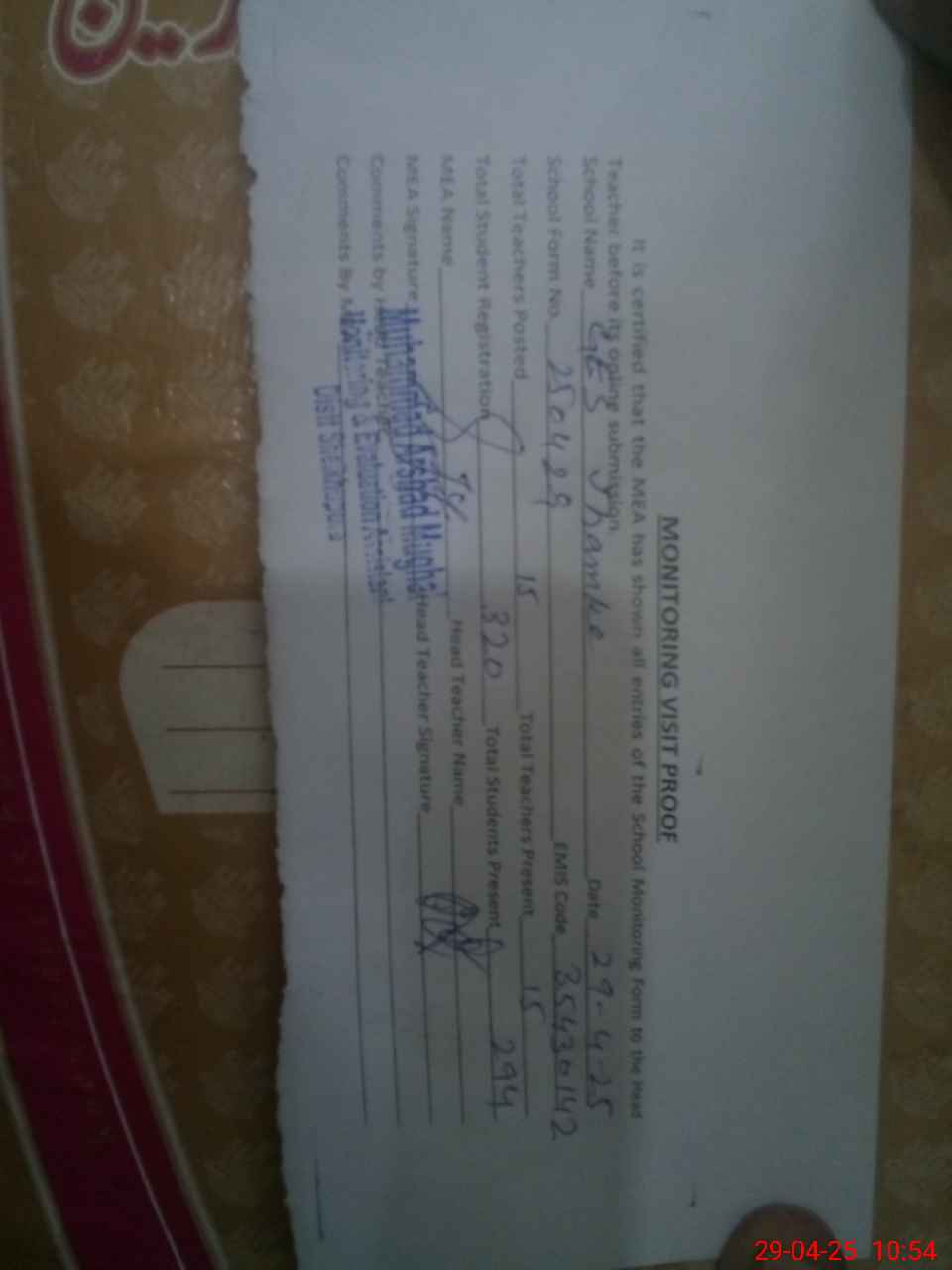 | Certified that this School was Inspected by the Undersigned MEA/DMO Today and the Information Stated Above is as Per Record. | |||||
