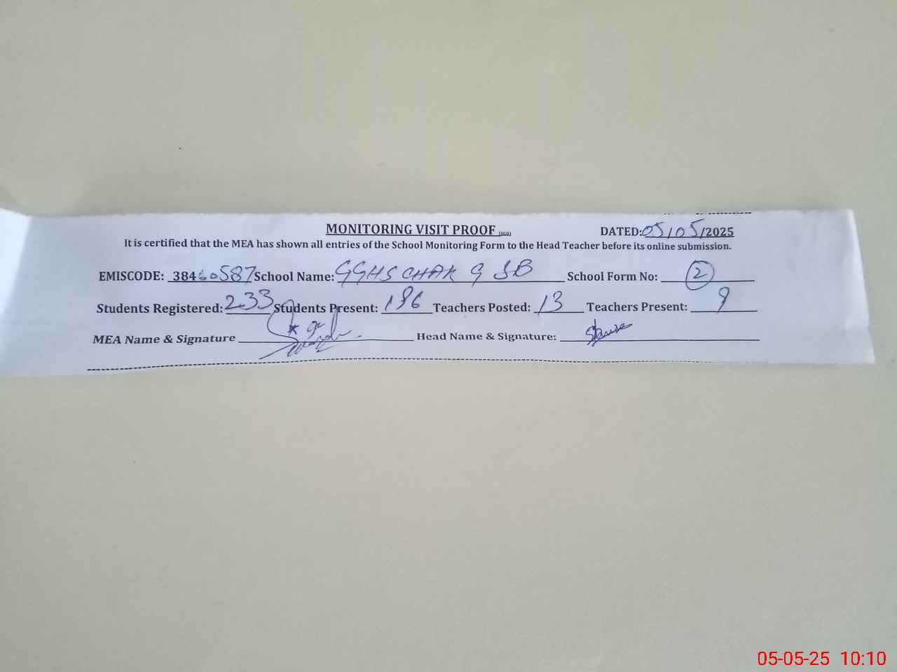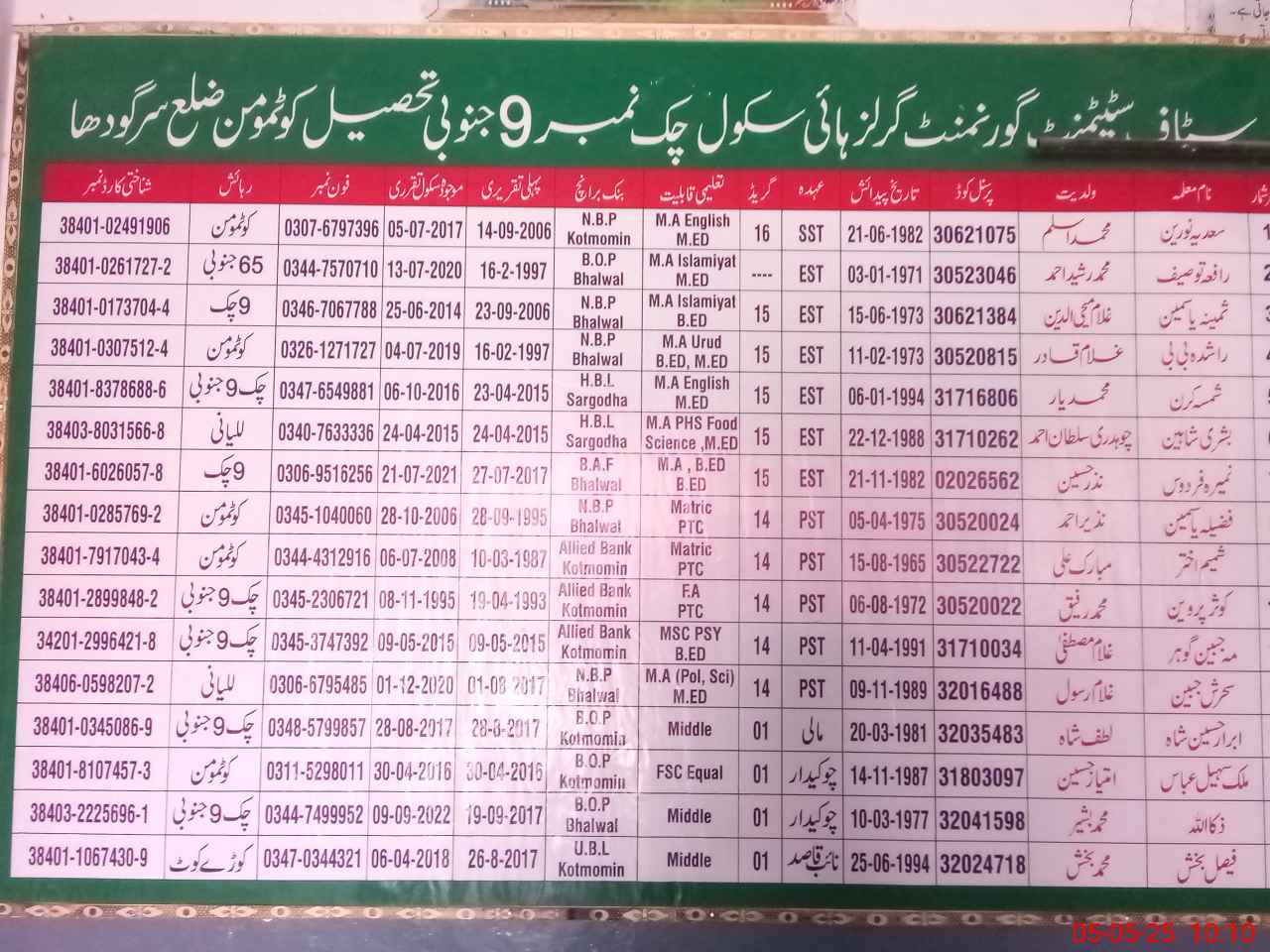 | EMIS Code: 38460587 | Name of School: GGHS CHAK NO.9 SB | |||