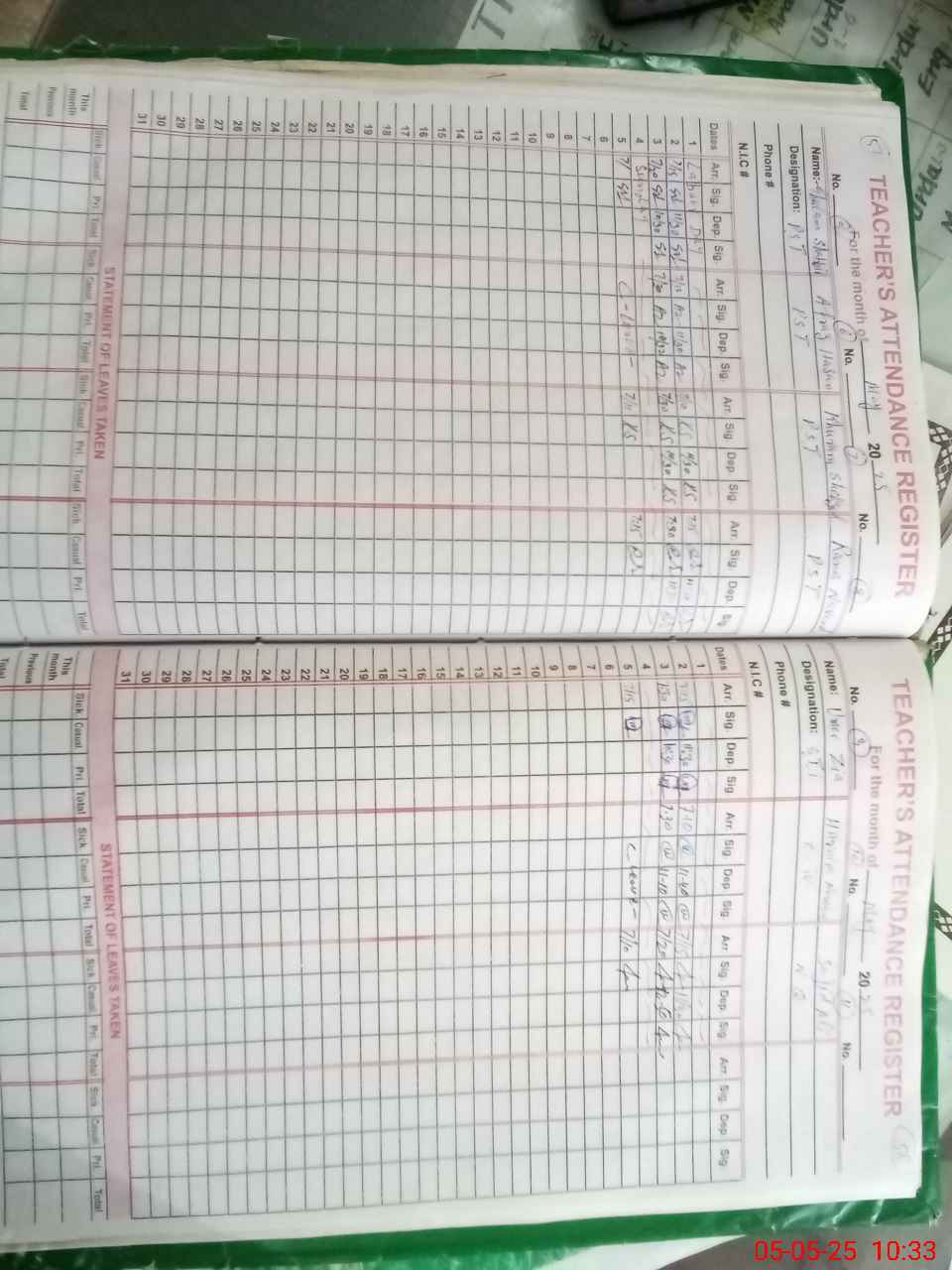 | CNIC | Full Name | Designation | R/C | Absence During Last Calender Month |