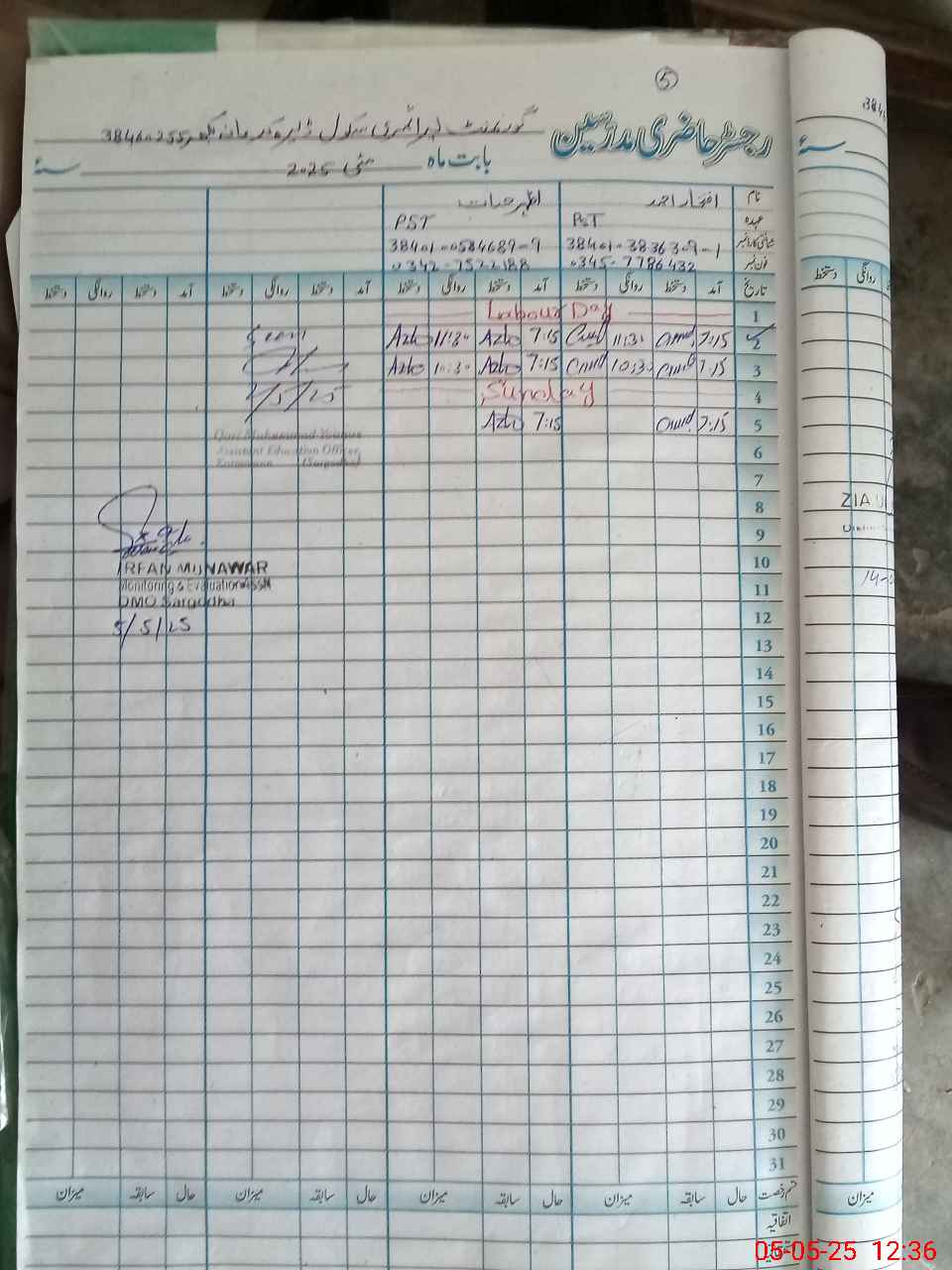 | Name: If**** Ah**** Designation: (School Headmaster's/Headmistress's) PST Phone/Cell Number: 03**** |