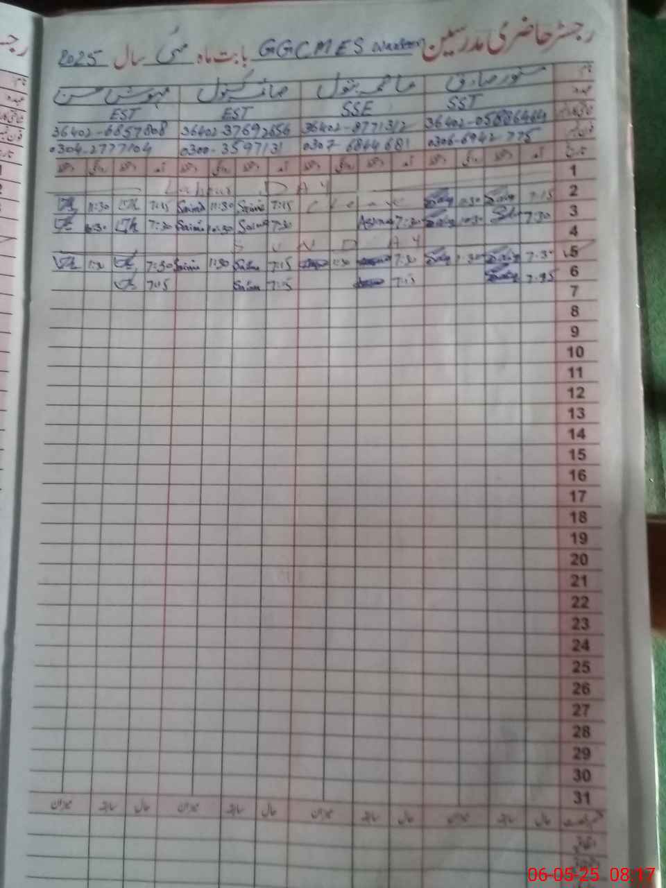 | Name: Mu**** Sa**** Designation: (School Headmaster's/Headmistress's) SST (English) Phone/Cell Number: 03**** |