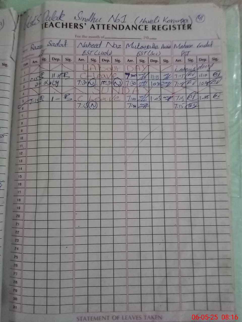 | 36**** | Ra**** Sa**** | SST | Regular | 0 | 0 | 0 | 0 | 0 | 0 | 0 | 0 | 0 | Absent (Un-Authorized) |