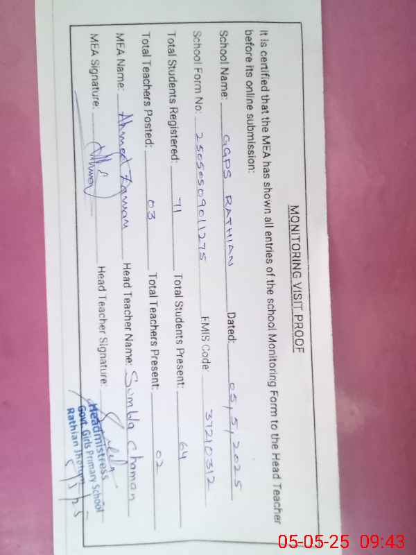 | EMIS Code: 37210312 | Name of School: GGPS RATHIAN | |||