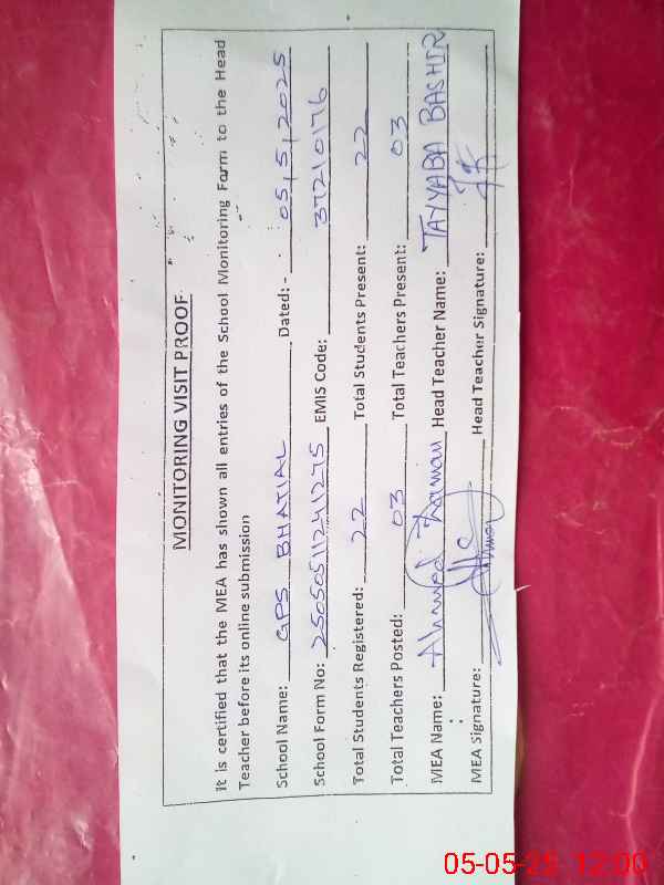 | EMIS Code: 37210176 | Name of School: GPS BHATIAL | |||