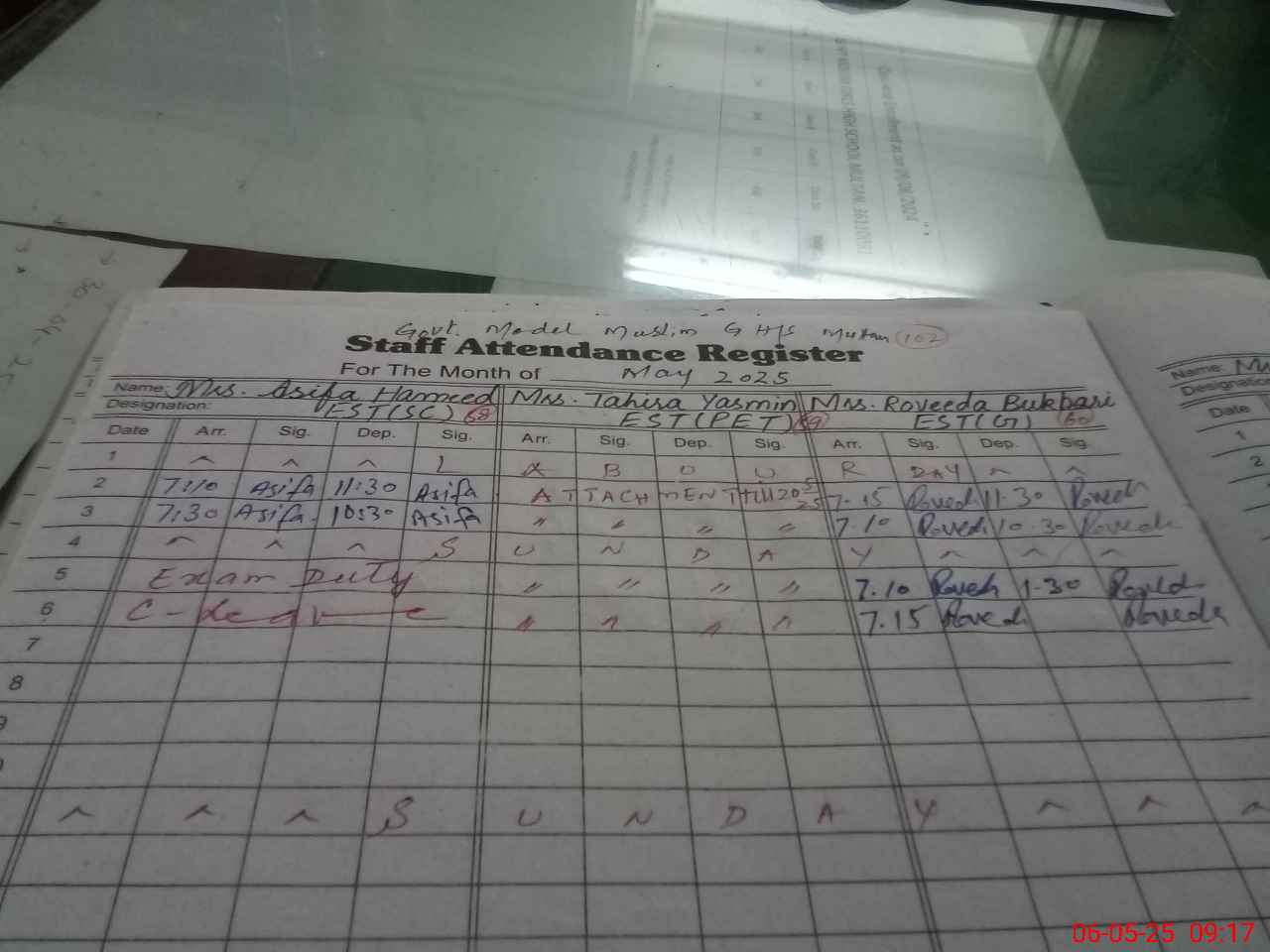 | CNIC | Full Name | Designation | R/C | Absence During Last Calender Month |