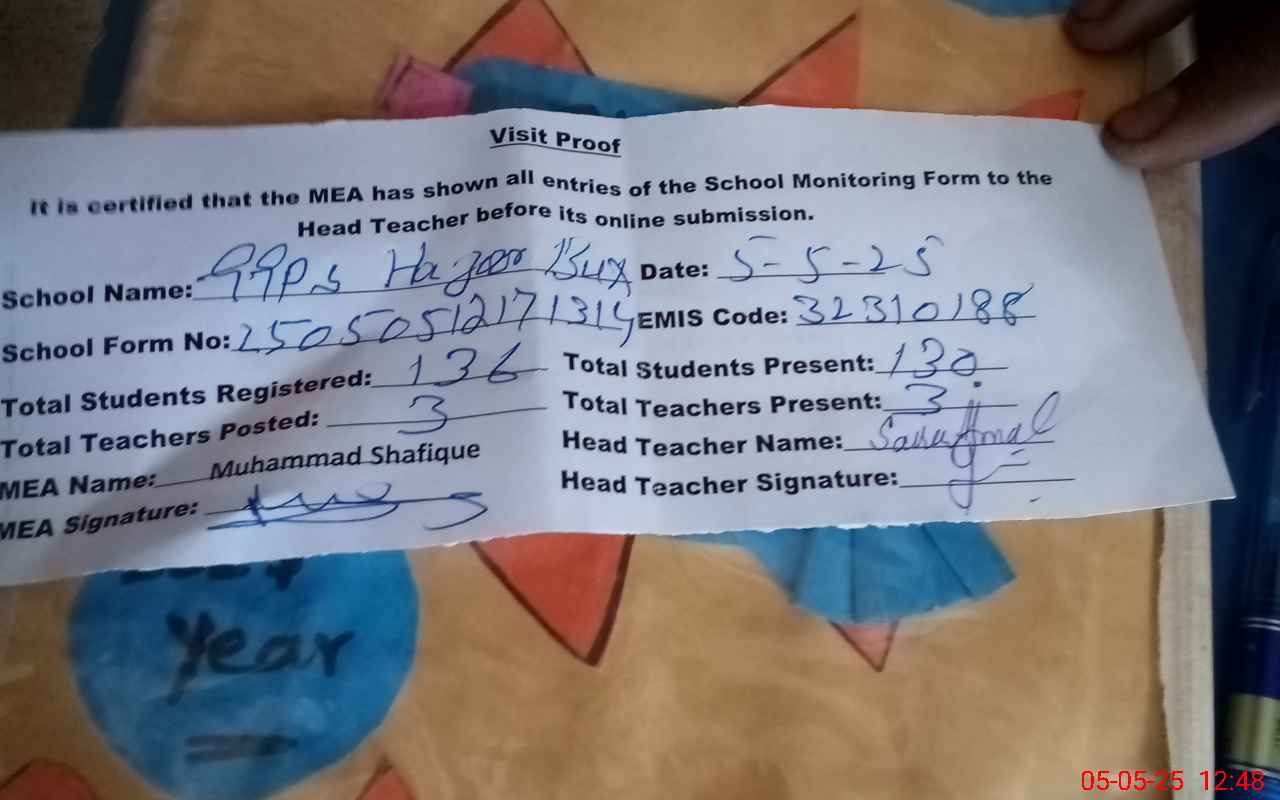| EMIS Code: 32310188 | Name of School: GGPS HAZOOR BAKHSH | |||