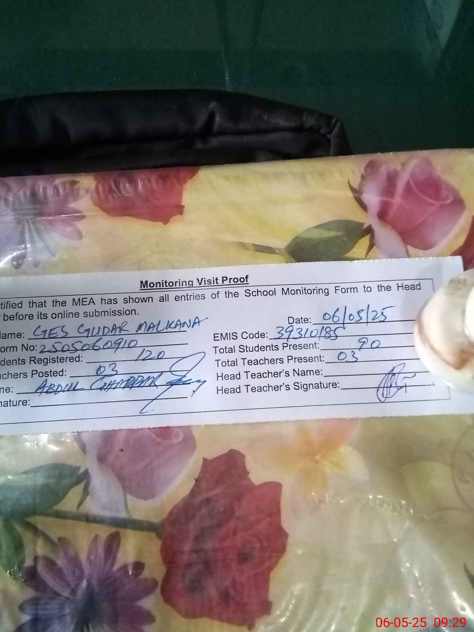 | Attendance Register | Head Teacher | MEA with School | Visit Proof |