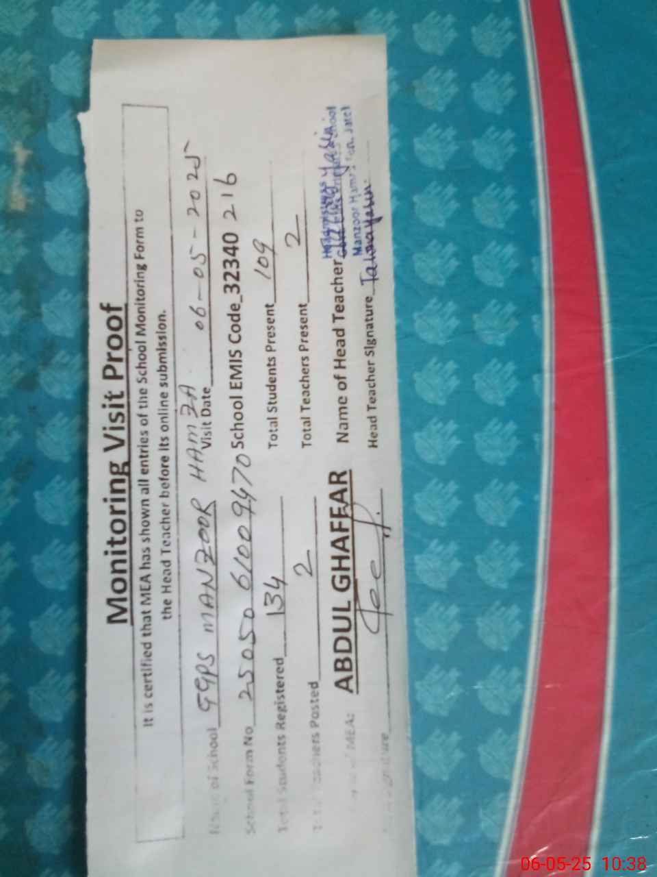 | EMIS Code: 32340216 | Name of School: GGPS MANZOOR HAMZA | |||