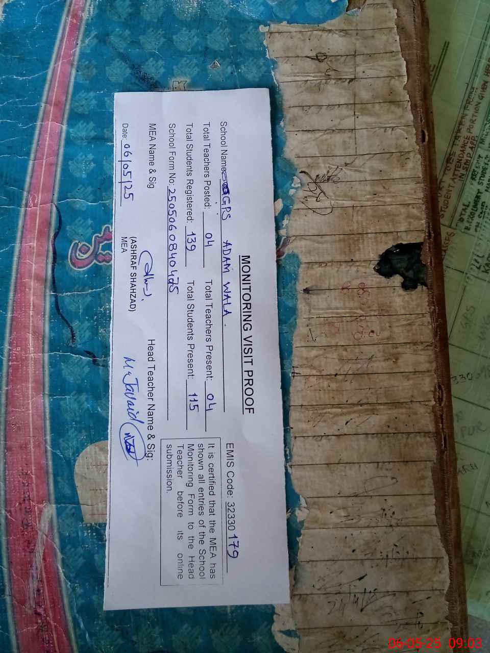 | EMIS Code: 32330179 | Name of School: GPS ADAM WALA | |||