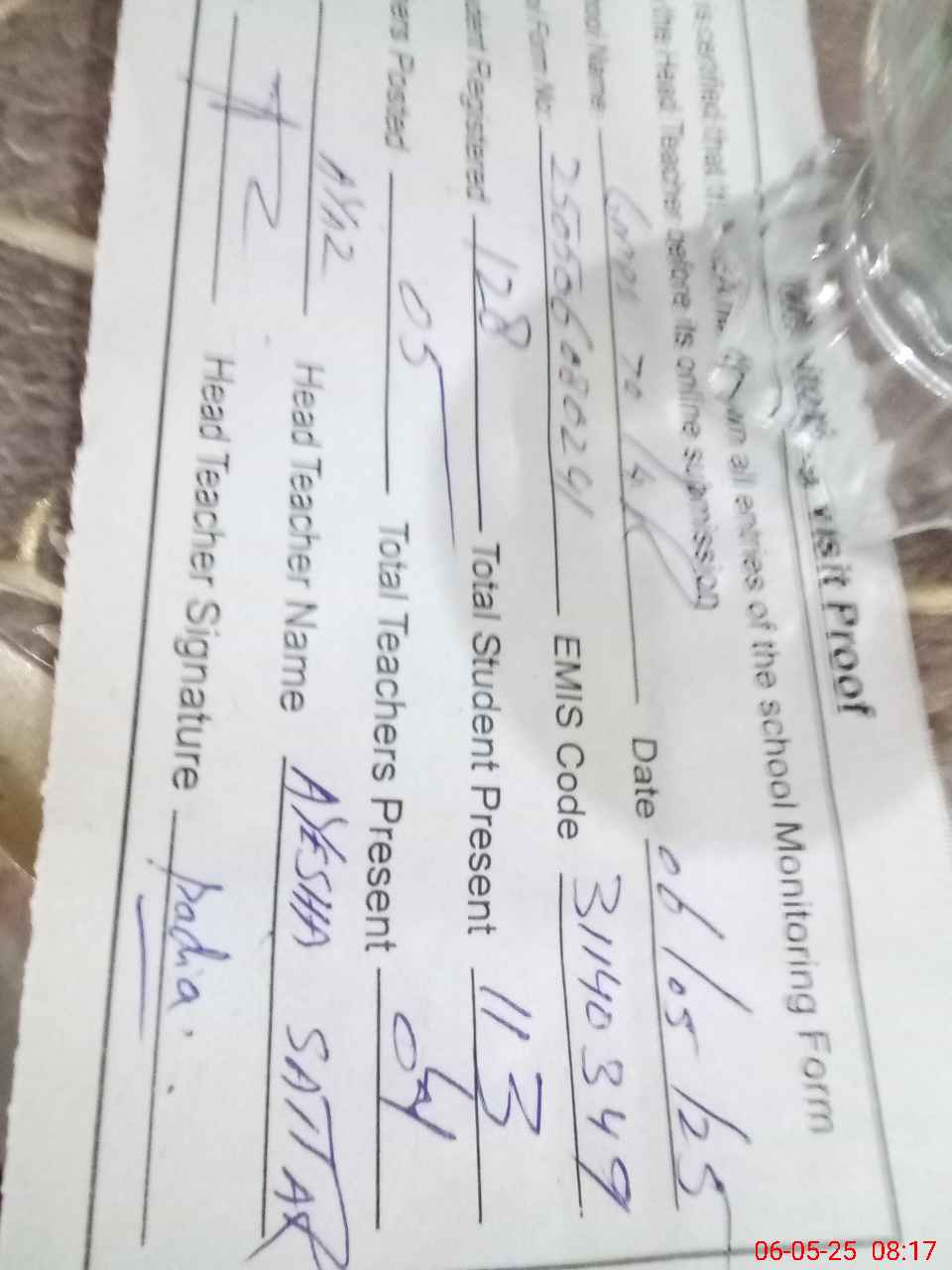 | Name: Ab**** Sa**** Designation: (School Headmaster's/Headmistress's) EST Phone/Cell Number: 03**** |