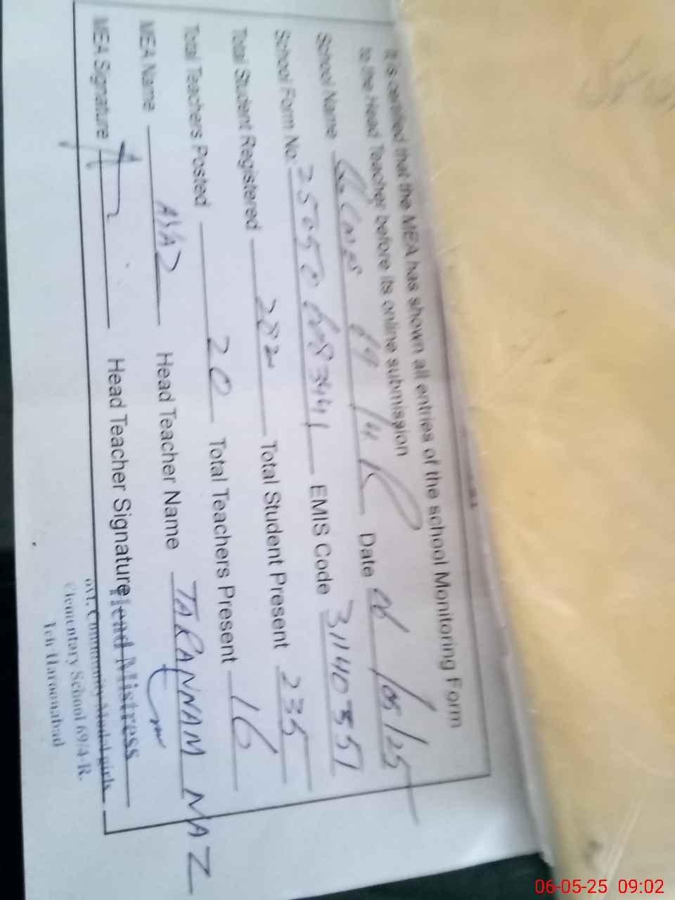 | Name: TA**** NA**** Designation: (School Headmaster's/Headmistress's) SST Phone/Cell Number: 03**** |