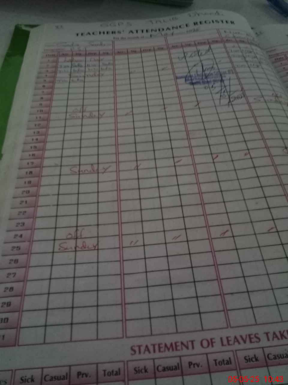 | Leave | Duty | Absent | Maternity | Medical | Ex- Pak |