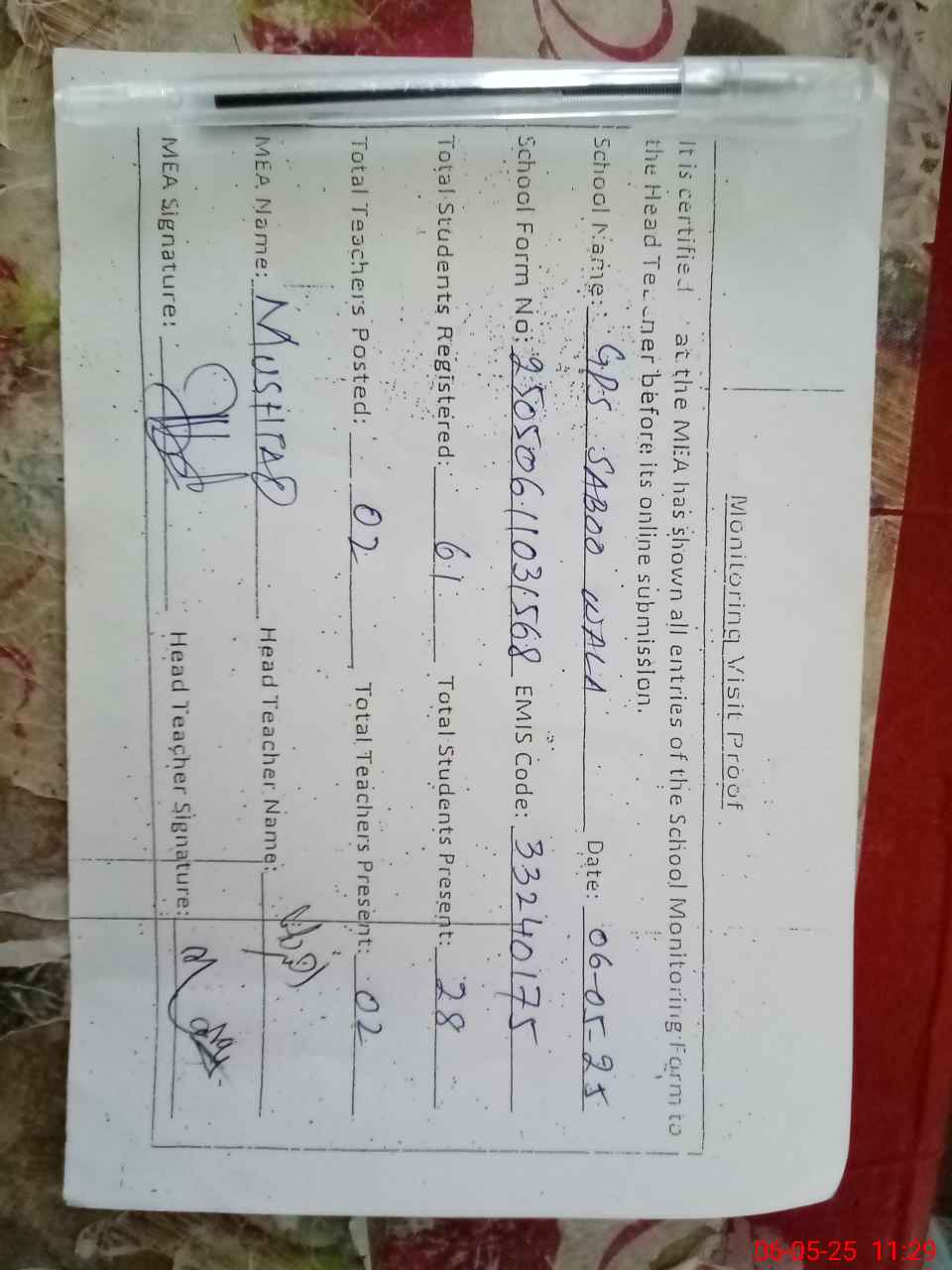 | EMIS Code: 33240175 | Name of School: GPS SABOO WALA | |||