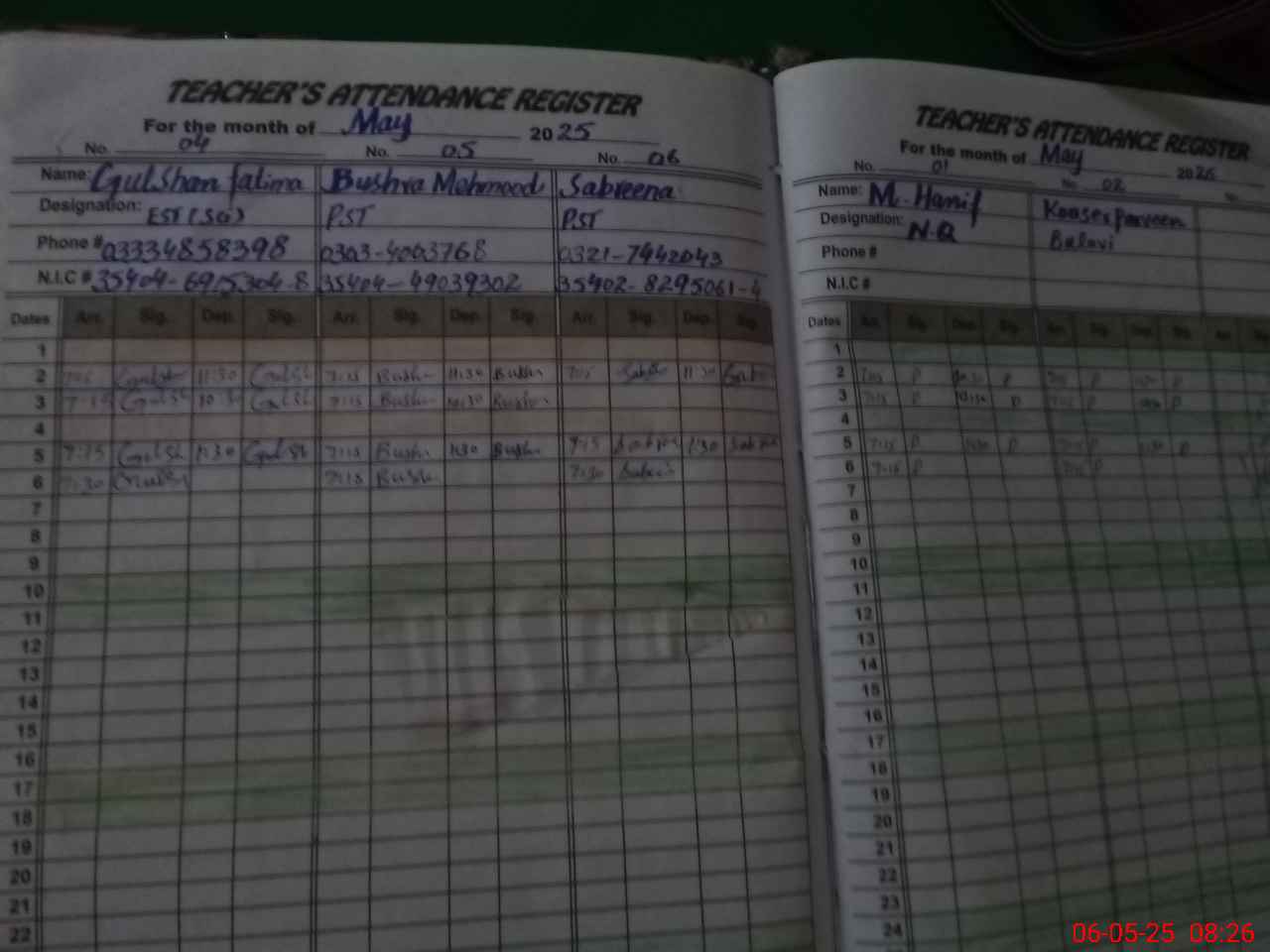 | Name: AQ**** Designation: (School Headmaster's/Headmistress's) SST Phone/Cell Number: 03**** |