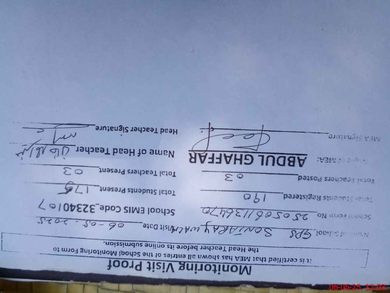 | Certified that this School was Inspected by the Undersigned MEA/DMO Today and the Information Stated Above is as Per Record. | |||||