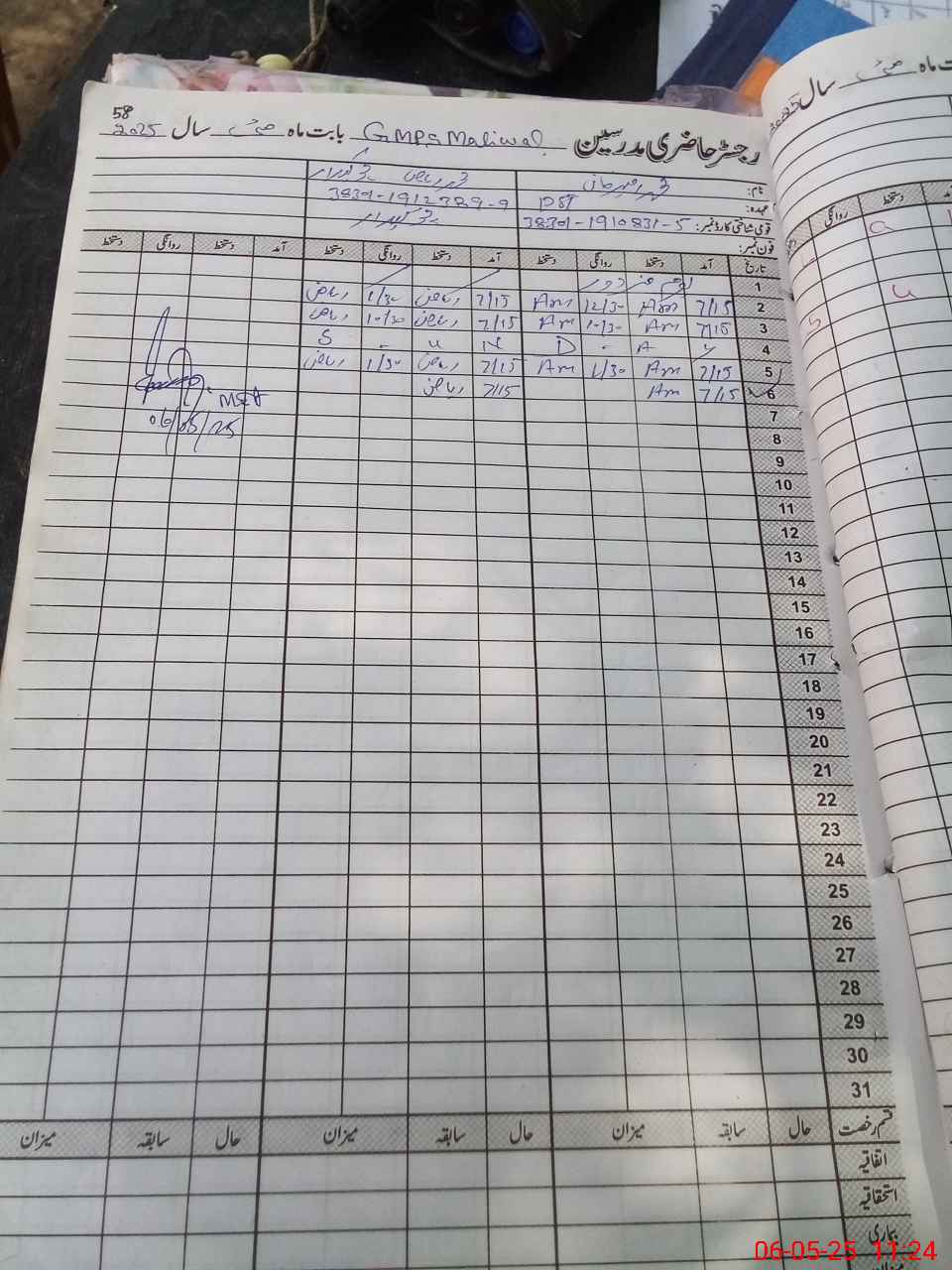 | CNIC | Full Name | Designation | R/C | Absence during last cal. month |