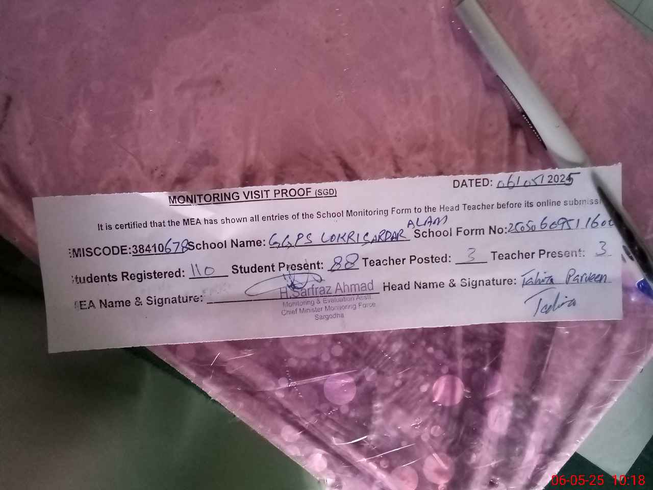 | EMIS Code: 38410678 | Name of School: GGPS LOKRI SARDAR ALAM | |||