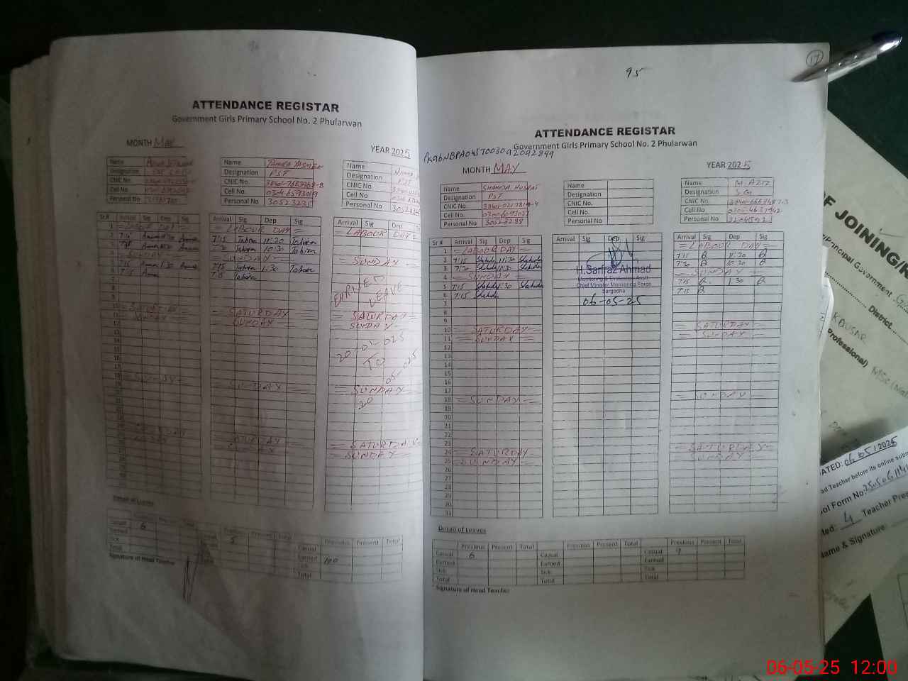 | Remarks (Use Separate Page if Required): Nighat Yasmeen PST is marked as unauthorized absent according to SOP as there is no sanctioned document found in the school | |||||