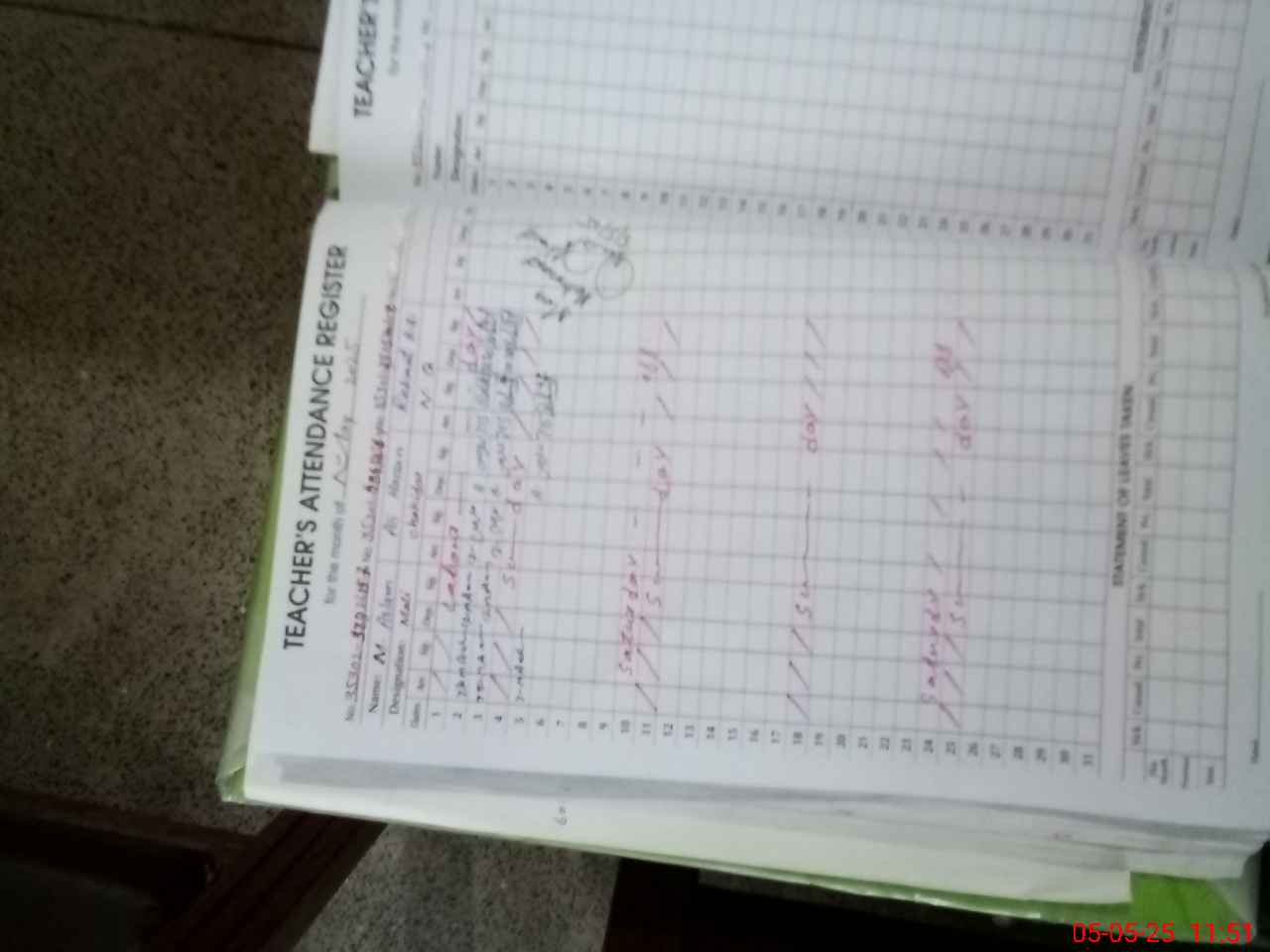 | 35**** | Na**** Ma**** | 5 | 1 | 0 | 0 | 0 | 0 | 0 | 0 | 0 | 0 | 0 | Exam Duty |