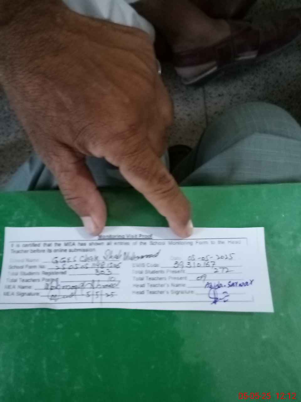 | Attendance Register | Head Teacher | MEA with School | Visit Proof |