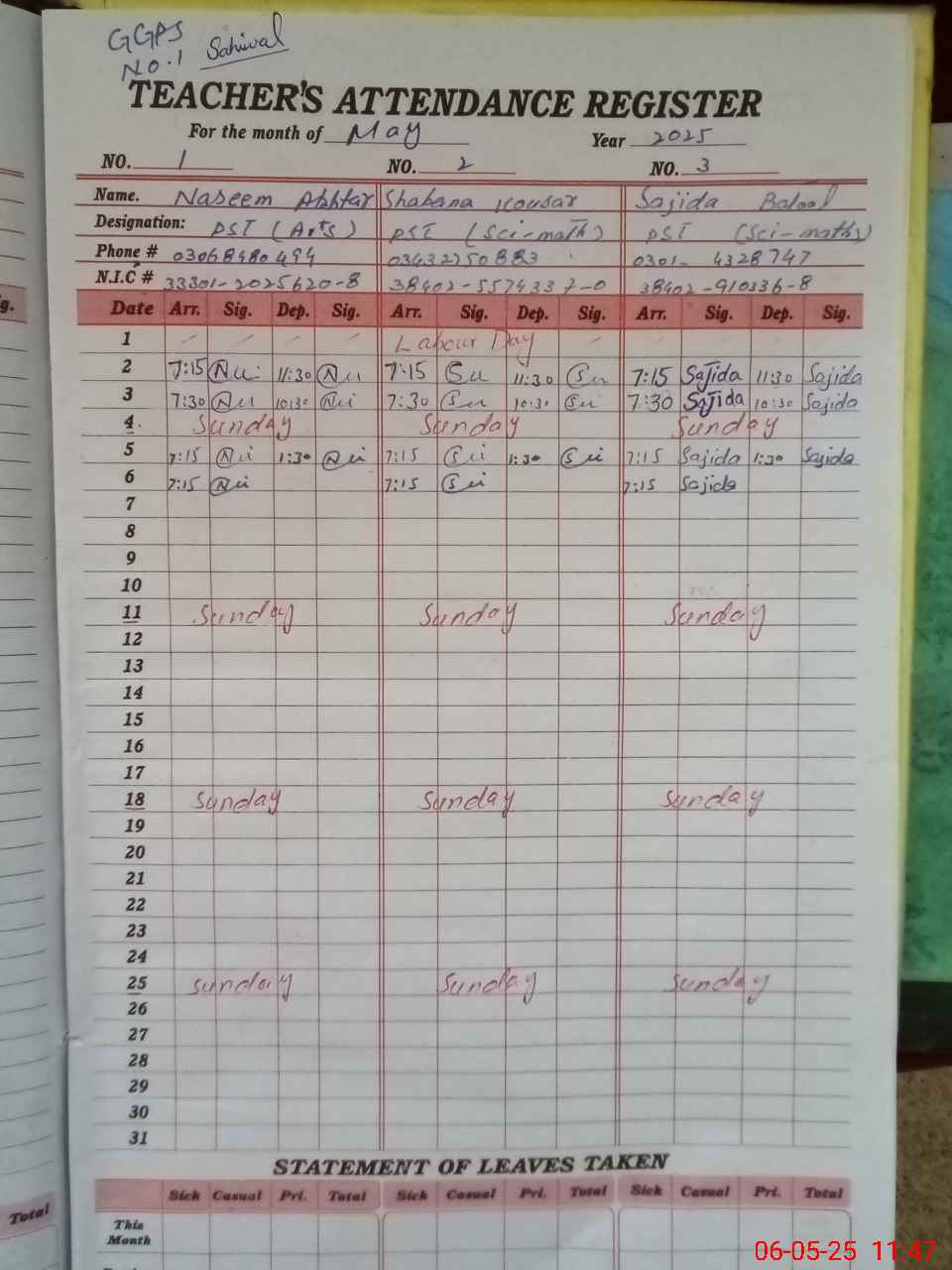 | EMIS Code: 38450446 | Name of School: GGPS NO.1 SAHIWAL | |||