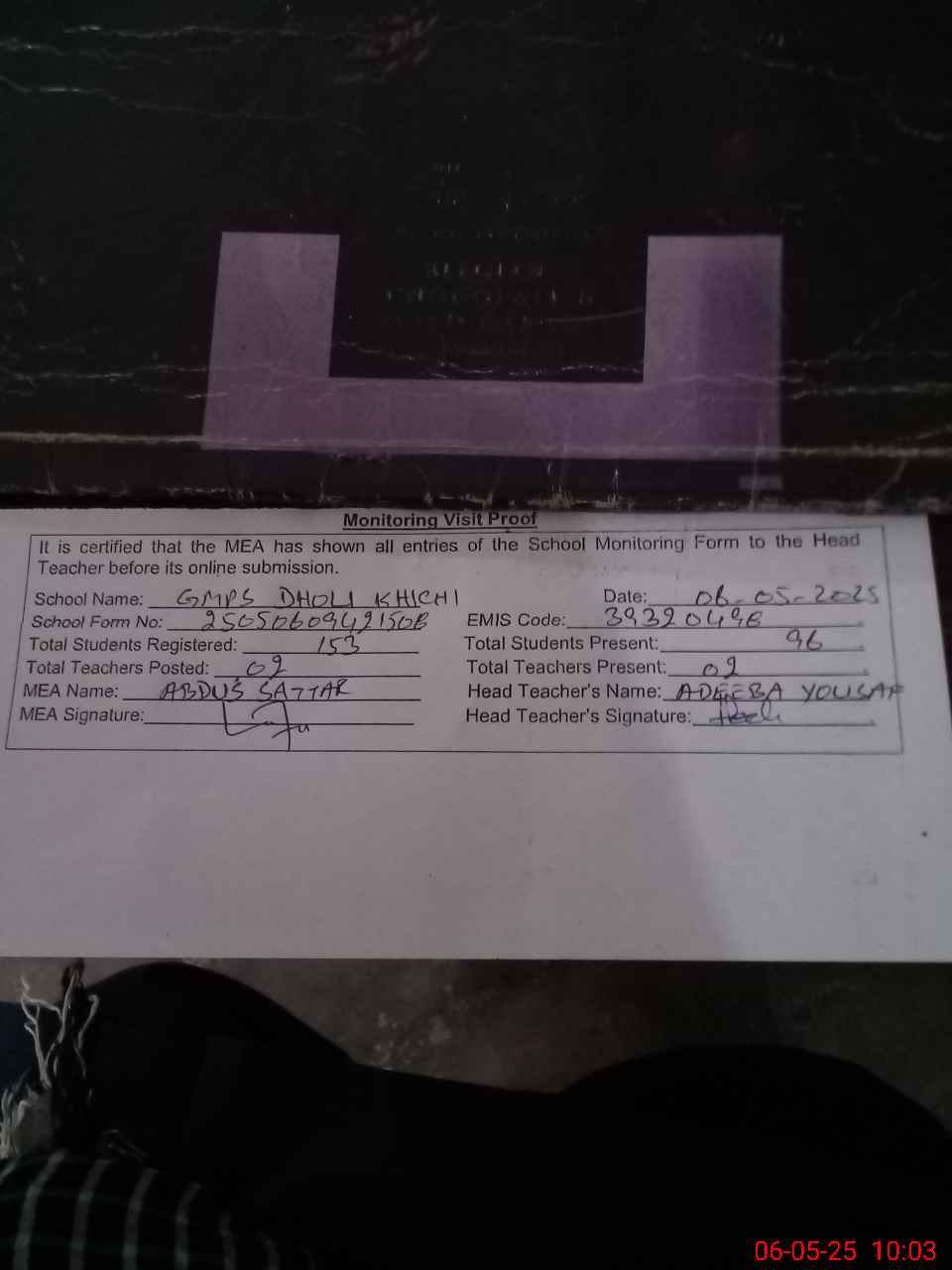 | EMIS Code: 39320498 | Name of School: GMPS DHOLI KHICHI | |||