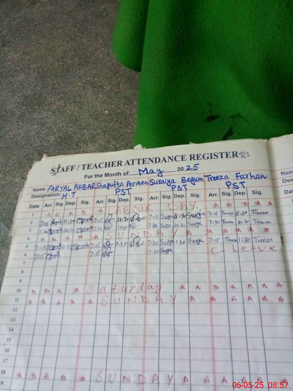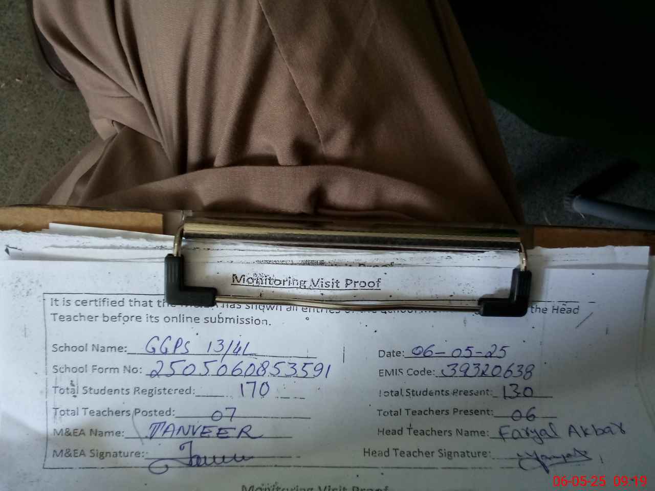 | Attendance Register | Head Teacher | MEA with School | Visit Proof |