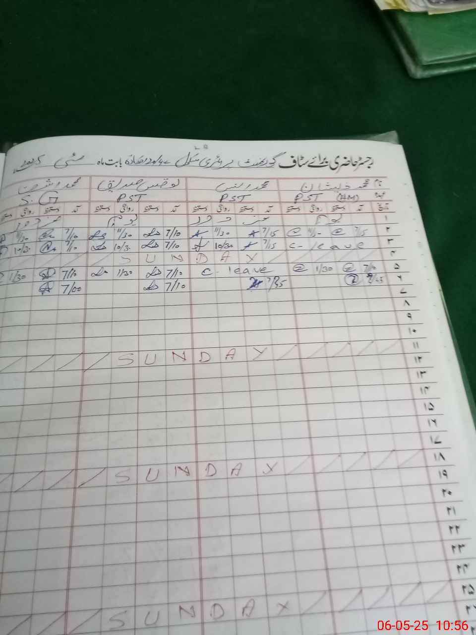 | CNIC | Full Name | Designation | R/C | Absence During Last Calender Month |
