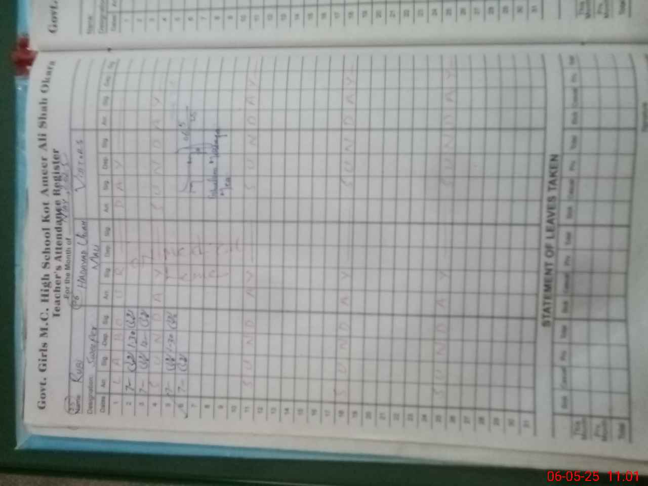 | 36**** | Hu**** Ya**** | SST | Regular | 0 | 0 | 0 | 0 | 0 | 0 | 0 | 0 | 0 | Exam Duty |