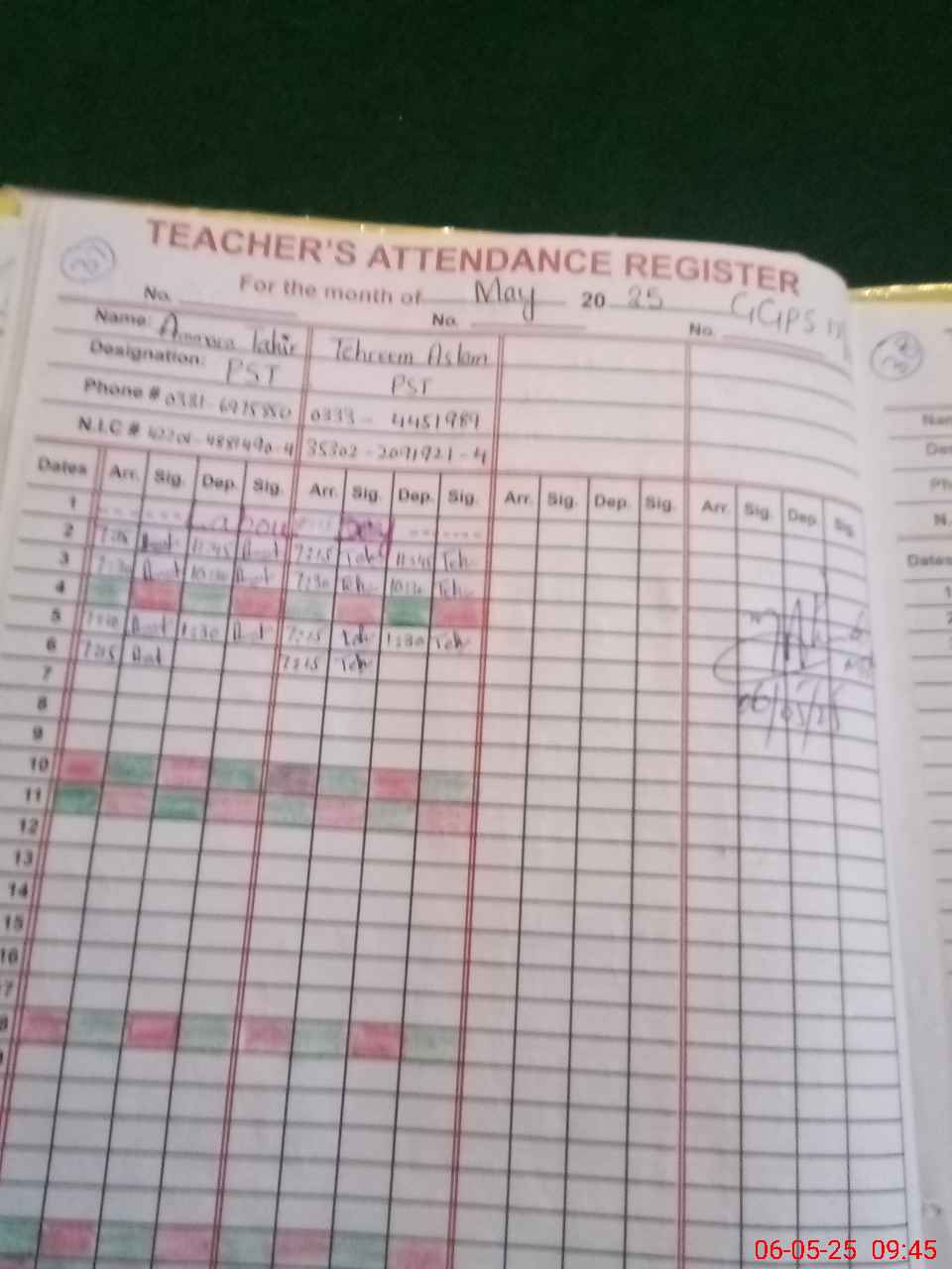 | Name: AM**** TA**** Designation: (School Headmaster's/Headmistress's) PST Phone/Cell Number: 03**** |