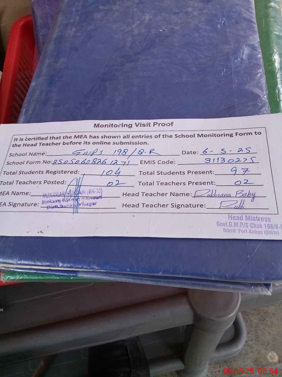| EMIS Code: 31130275 | Name of School: GGPS CHAK NO 198 8R | |||